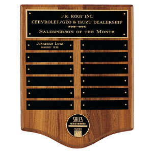 - 10 1/2" x 13" American Walnut CAM Plaque w/12 Black Brass Plates (Medallion Sold Separately)