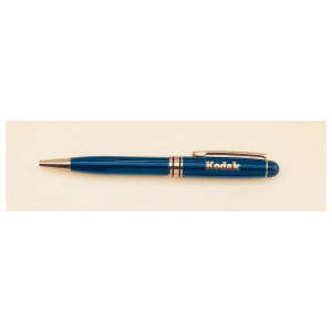 - 5 1/4" Blue Brass Pen with Clear Plastic Pen Case